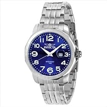 - Blue dial with large white arabic numerals and white hands; magnified date window